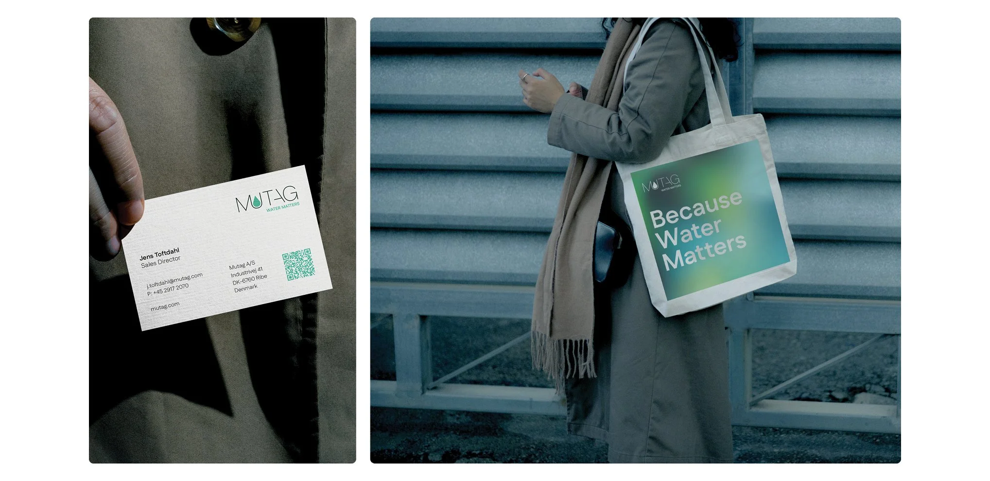 En udviklingsvirksomhed – og det ses i udtrykket. Designet er lyst, præcist og detaljeret. Farveuniverset bærer præg af at være under vand, og det samme gælder logotypen. Under vand forsvinder detaljer, mens andre forvrænges og flyder sammen – præcis som i logoets spinkle bogstaver. Samtidig fungerer u’et som et symbol på, hvordan viden og teknologi bruges til at tage hånd om vandet.